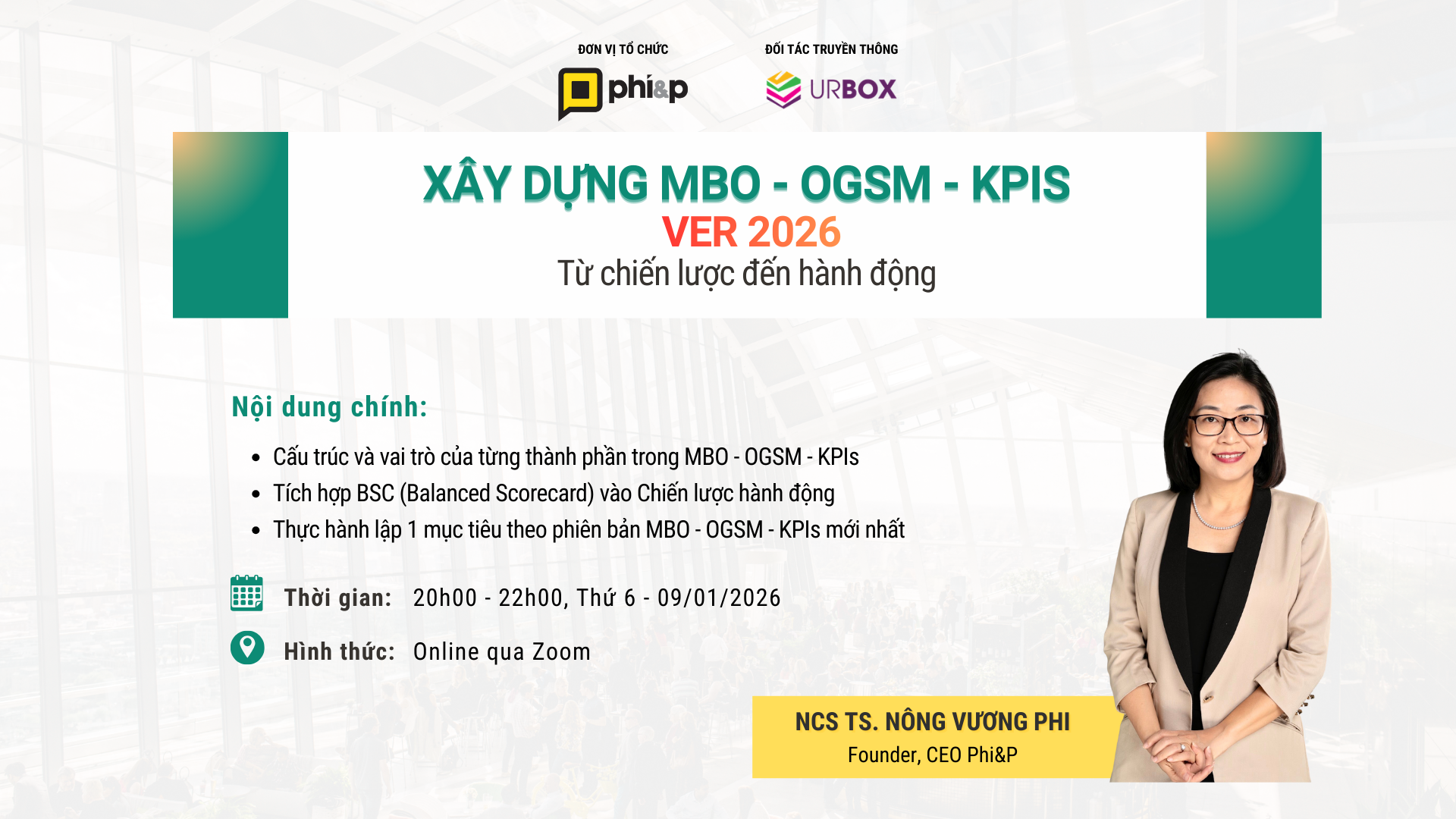 Workshop này giúp bạn nhìn lại toàn bộ bức tranh MBO – OGSM – KPIs dưới góc độ đúng vai – đúng logic – đúng phương pháp, để hệ thống không chỉ “đúng trên giấy” mà thực sự vận hành được trong tổ chức.